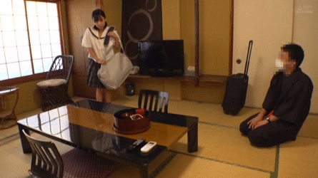 母親と二人で温泉旅館に来た女の子…大浴場で見かけたおじさんのチンポに欲情!?自分からチンポをしごきにいく痴女行為…こんな女の子にチンポをシコられたら我慢できません!精子を搾り取られる中出しセックス…何度も中出しさせるロリ痴女GIF画像です。