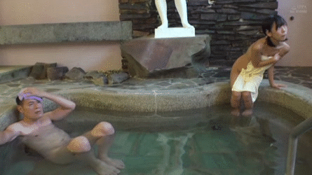 お母さんと温泉に来た女の子が痴女行為!?男性客の精子を搾り取る中出しGIF画像